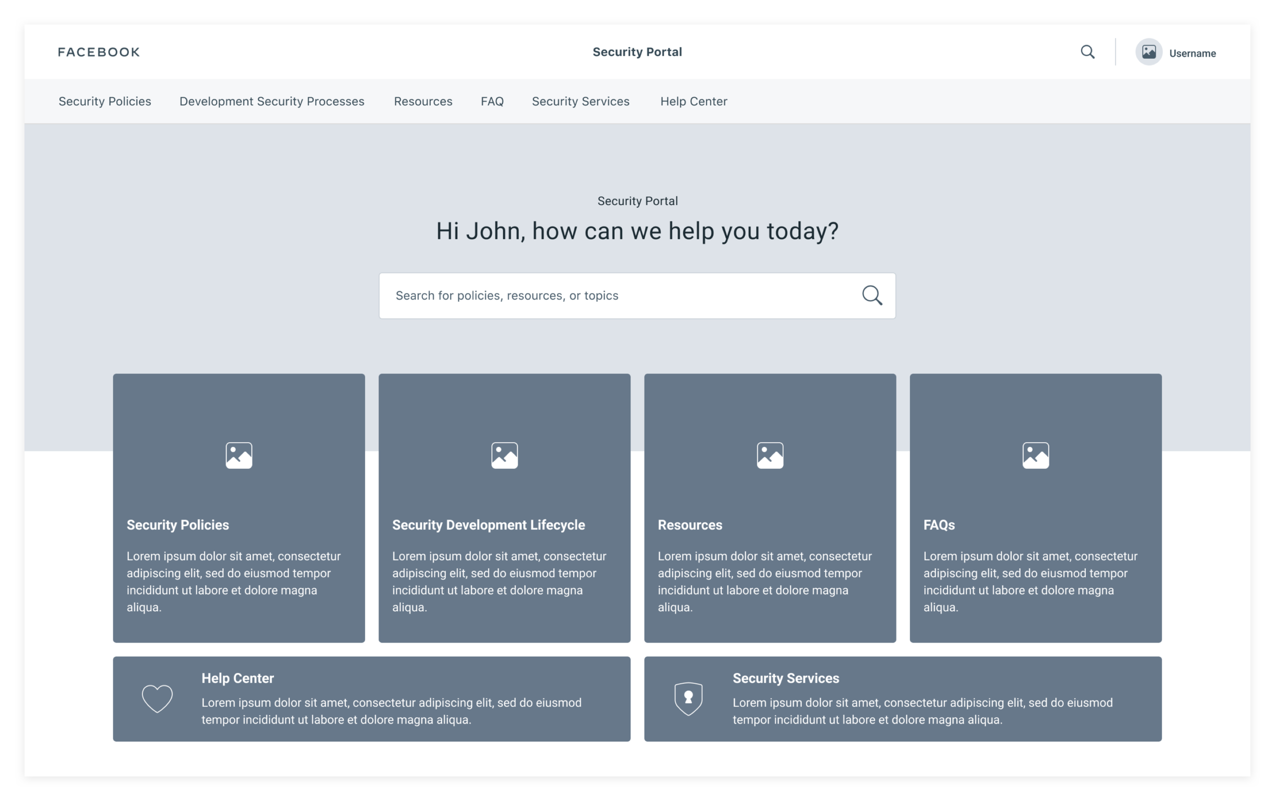The Security team at Meta (Facebook) covers a broad amount of policies and security guidelines for both auditors and employees, interns, and contingent workers at Meta. However, there was not one central location for the Security teams content and the Security team was receiving a lot of questions and tickets that could easily be covered in an article. In addition to needing to provide a way for users to self support their security questions, developers and other employees needed an easier way to request security reviews.
